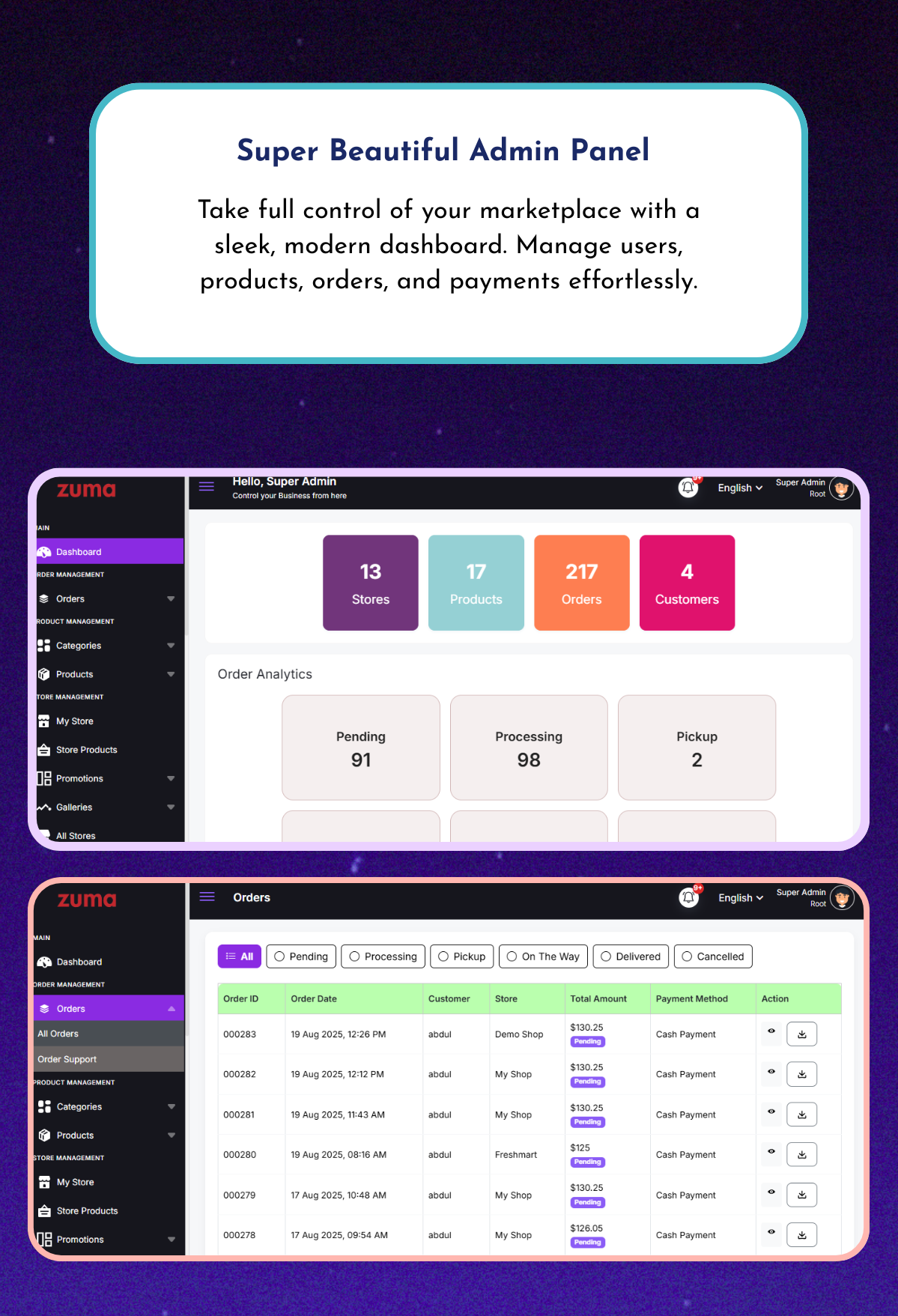 Zumacart β Complete Multi-Vendor eCommerce Solution (Web + Mobile Apps + Admin Panels)